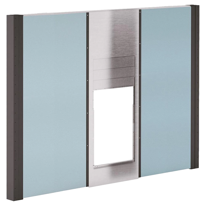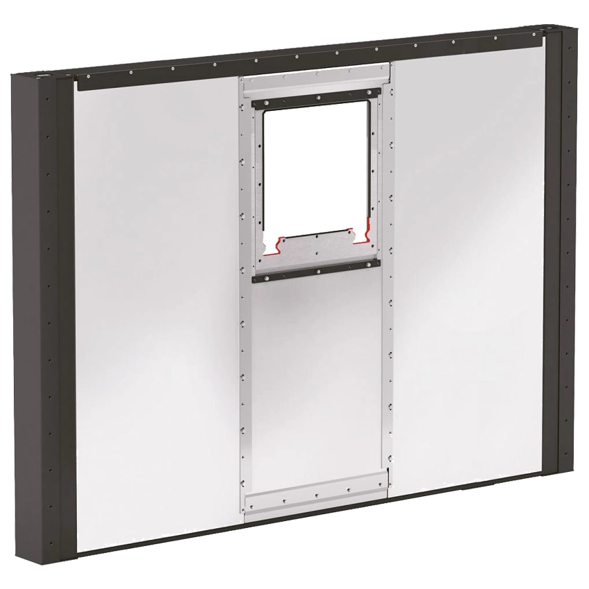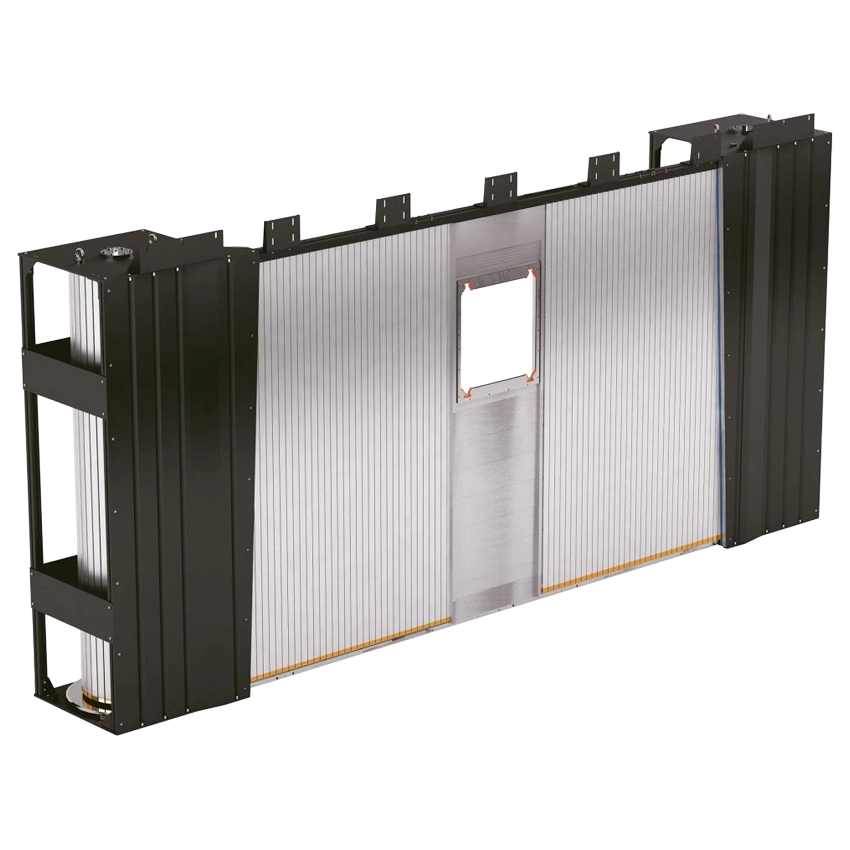 Zástěna pracuje ve vertikální poloze a může být dodána s krytem nebo bez něho